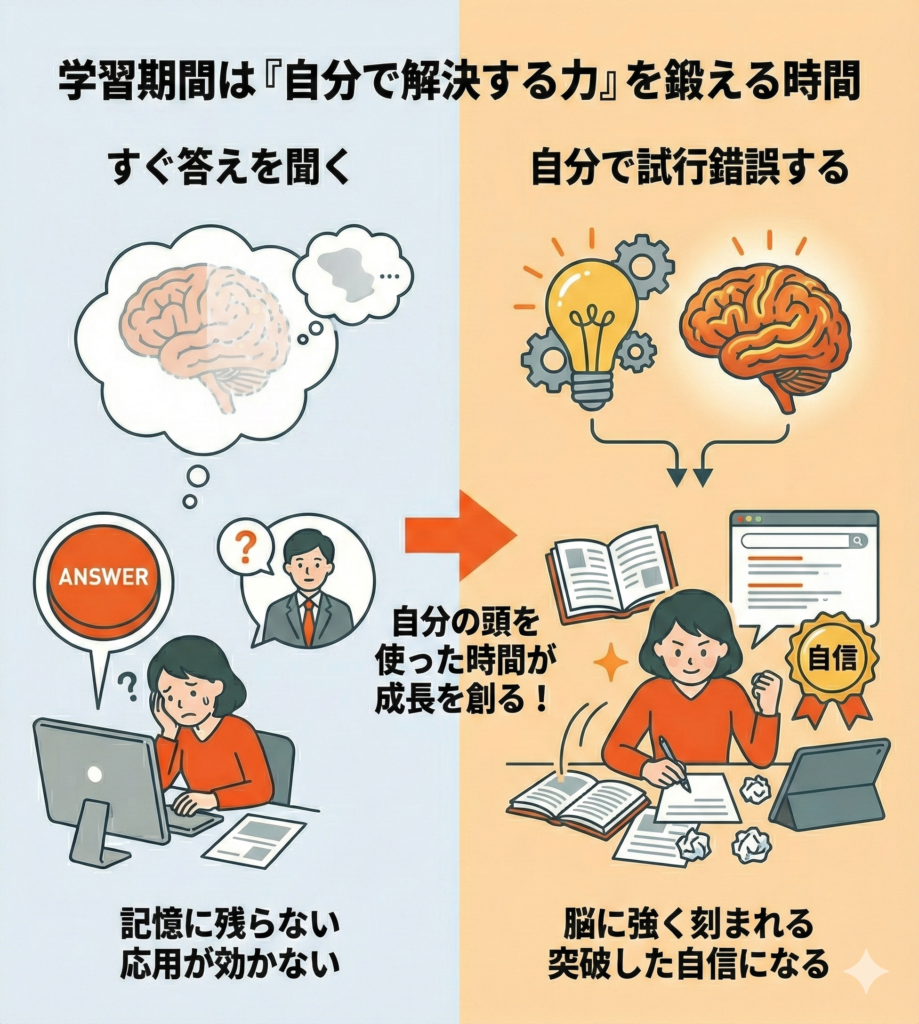 実は、すぐに答えを聞く人は伸びません。