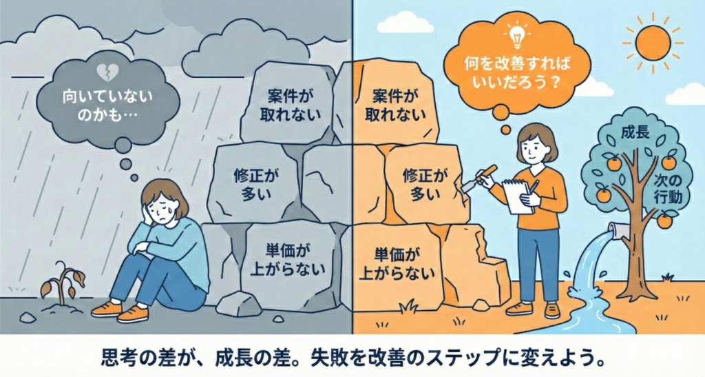 うまくいかなかった理由を「向いていない」で終わらせるのではなく、「どこを直せばいいか」に変換できる人が伸びます。