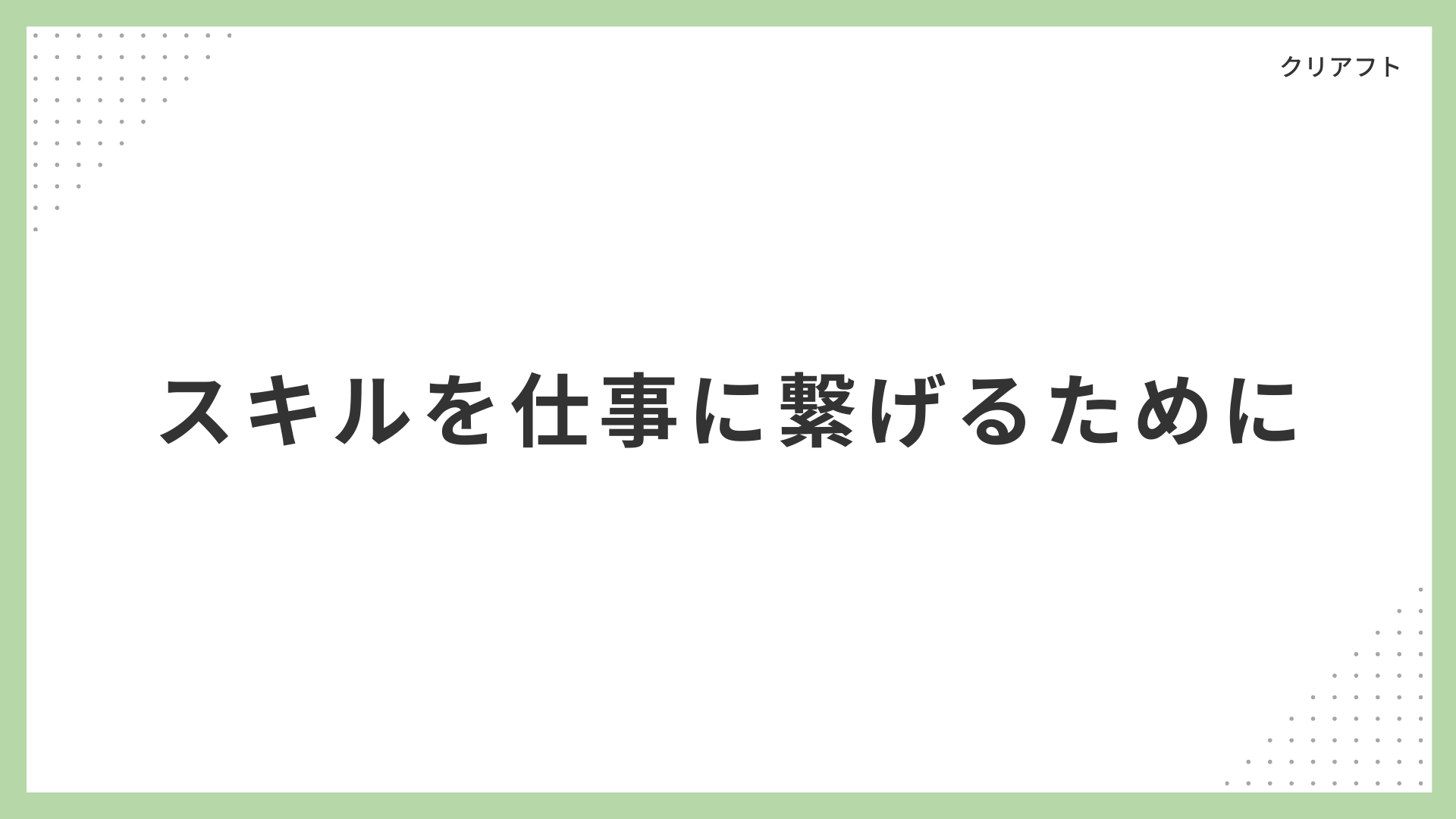 スキルを仕事に繋げるために